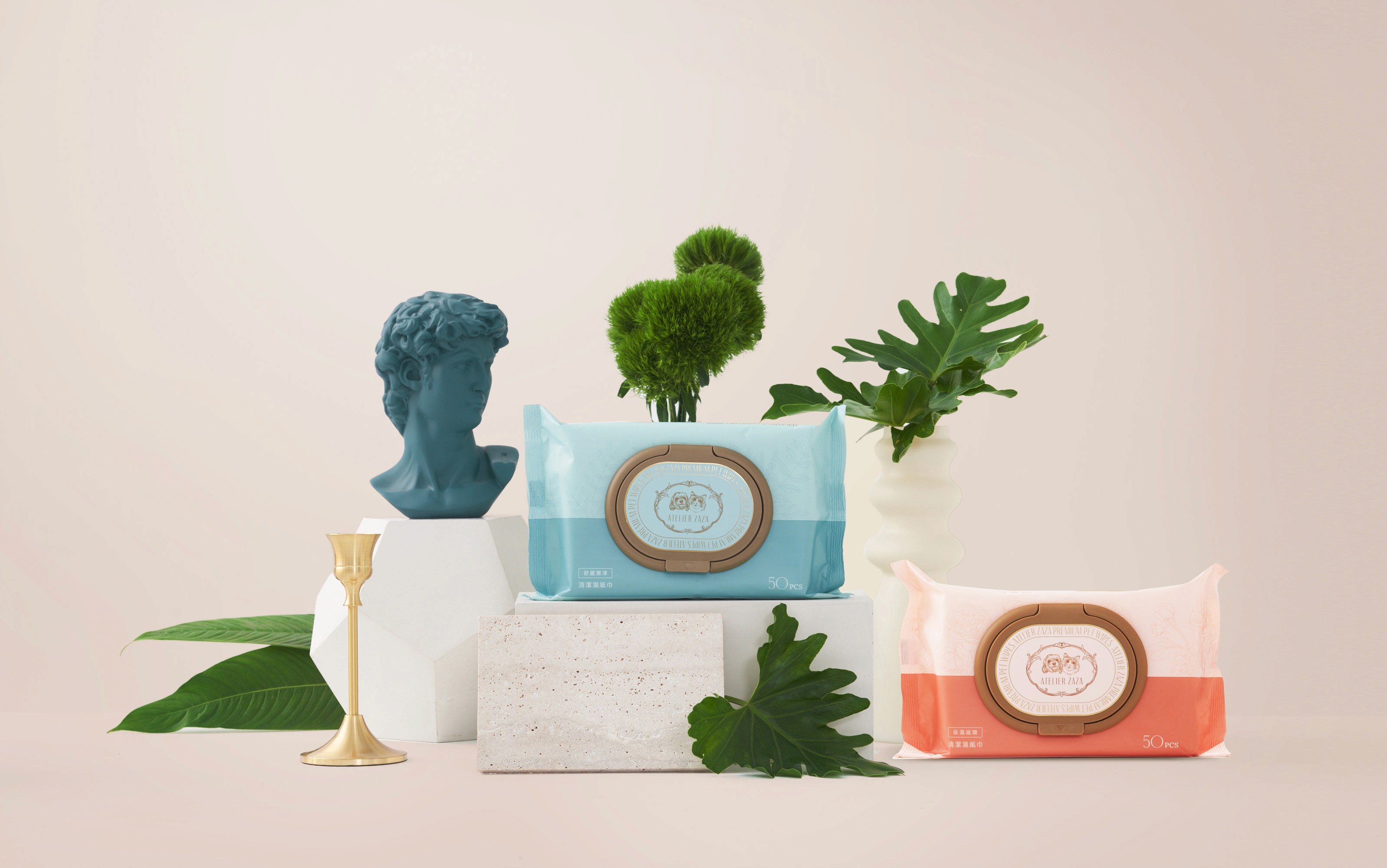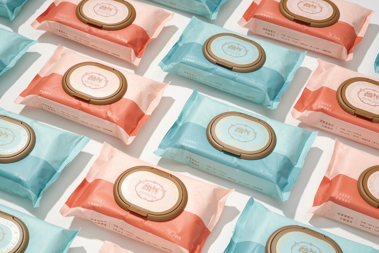 Atelier Zaza is a premium line of pet wet wipes. The design language aims for elegant and sophisticated packaging design inspired by French chic aesthetics. The design conveys a sense of luxury and subtlety while maintaining a playful touch to appeal to pet owners who prioritize both style and functionality. 紮紮工坊是一款高端的寵物濕紙巾系列。其設計語言以法式優雅美學為靈感,追求精緻且高雅的包裝設計。該設計傳遞出奢華與低調的感覺,同時保留了一絲俏皮的元素,吸引那些注重風格與實用性的毛主人們。